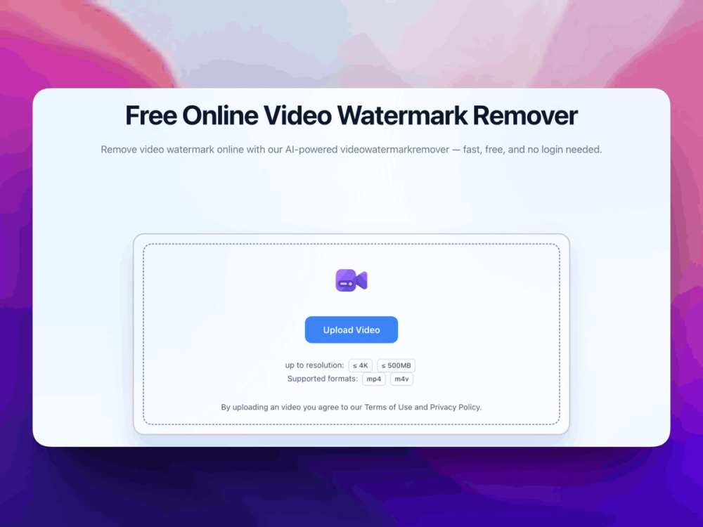Video Watermark Remover is an AI-powered, web-based tool that helps users quickly remove unwanted watermarks, logos, timestamps, or text from videos. Using advanced video inpainting technology, it automatically detects watermark areas and intelligently reconstructs the background with natural-looking pixels, delivering clean, professional results without visible distortions. No software installation or editing skills are required—just upload your video, let the AI process it, and download a watermark-free version in minutes.